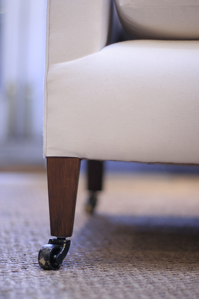 Pimpernel’s most classic sofa, the Malplaquet is named after the Duke of Marlborough’s famous victory of 1709 and captures something of the English grandeur of the early 18th century. A comfortable two-seater, this Pimpernel Classic comes freshly covered in cream calico with straight brown legs, brass castors and two feather cushions.